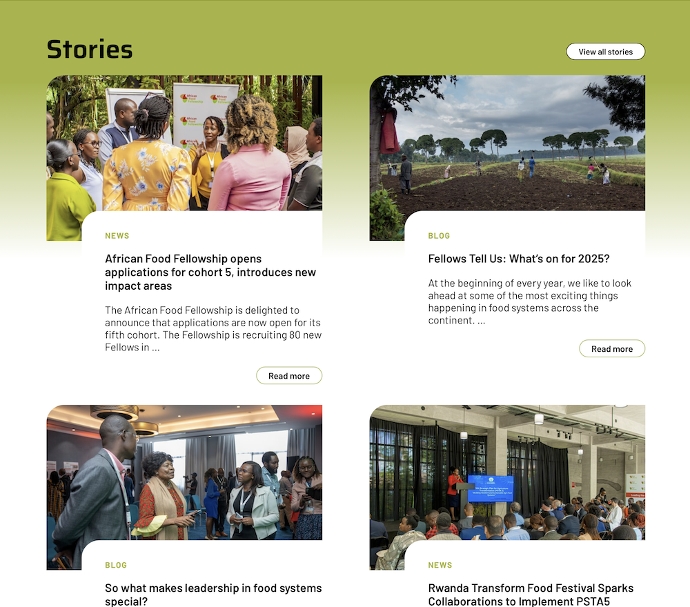 In June 2023, we launched a redesigned African Food Fellowship website to better showcase the organisation’s vision, activities, and future growth. Additionally, we assessed, customized, and implemented a CRM system to support community and programme management.